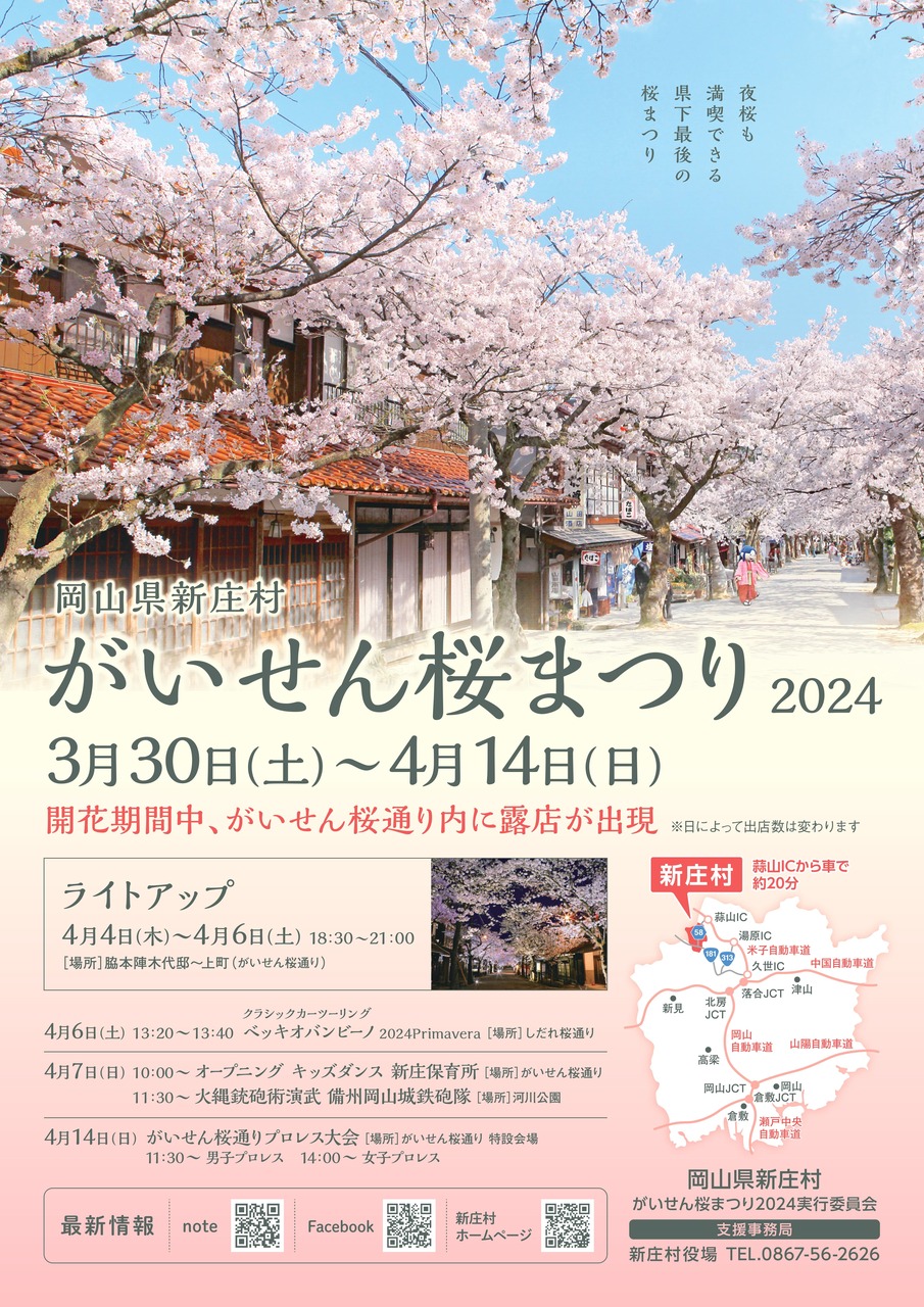 旧出雲街道の宿場町『新庄宿』の面影が残る「がいせん桜通り」で、お花見はいかがですか。